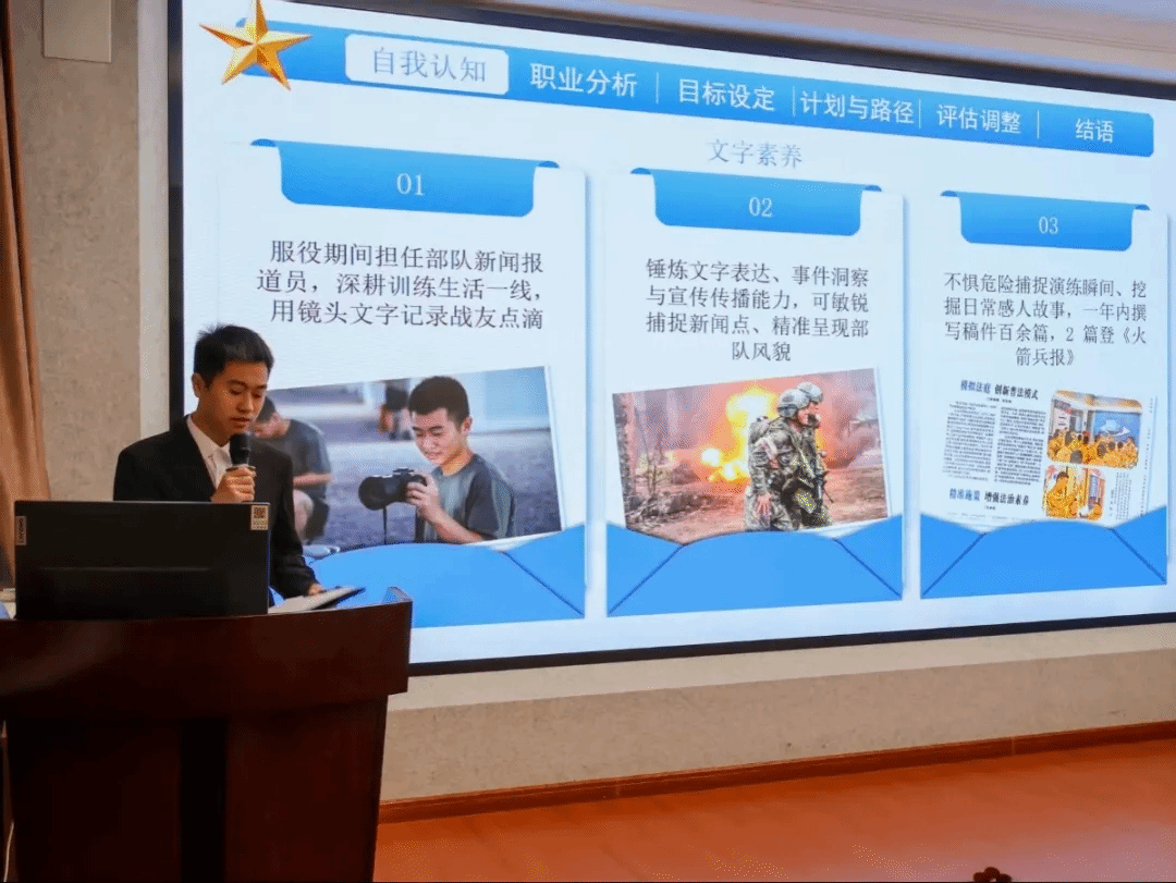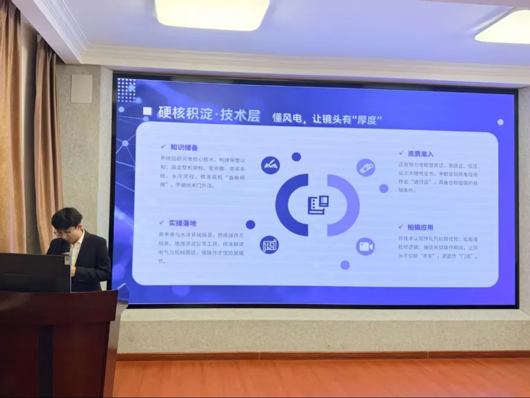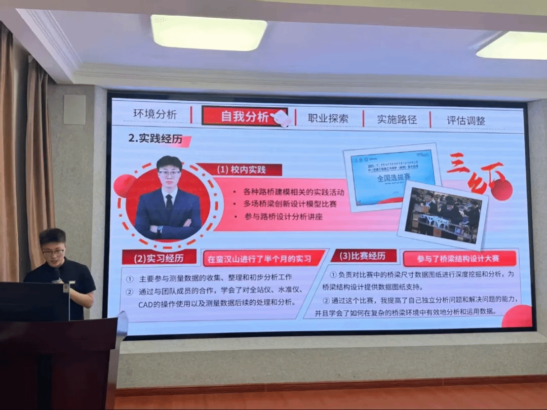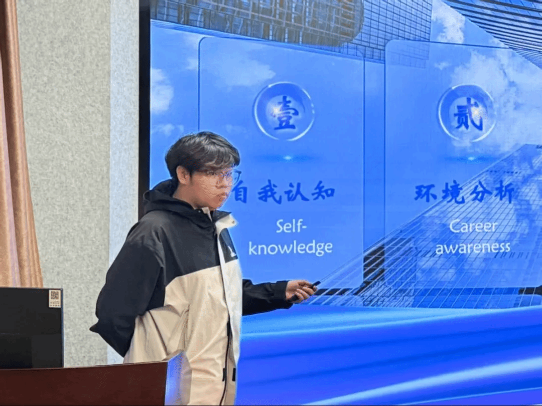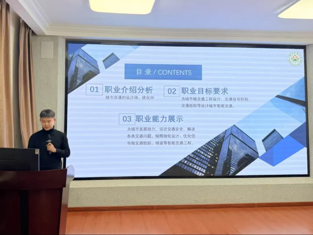 大赛开始,主持人对活动内容进行了介绍,随后各赛道参赛选手依次进行职业规划报告。成长赛道中,董钰淇同学在致力成为铁路职员的道路上稳步成长;廖鹏辉同学以专业为本,立志在新能源领域闯出自己的一片天;徐灵炜同学凭借两年军旅生活磨炼的坚毅意志,努力成为一名合格的军营文职员;张可同学依托对无人机结构的深刻认知,稳步迈向职业目标;王琪斌同学分享了家族三代人的深耕历程,以传承之力为奋斗底色,坚定追逐职业理想。就业赛道中,樊菊深耕专业领域,在就业征程上执掌方向、笃定前行;崔轩瑜同学以青春为翼,在职业规划的道路上奋勇争先;杨乘懿同学立足专业优势,深耕职业规划,清晰展望未来发展蓝图;吴渝同学以新能源专业为核心,以新媒体技术赋能,在追梦路上稳步前行。每一位选手的职业规划报告都精彩纷呈,评委老师结合报告内容进行了专业性评分与针对性建议,进一步提升了这场比赛的意义与价值,最后杨慧和李长春老师对全体选手的职业规划报告作了总结点评。