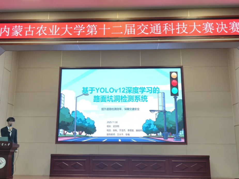 2025年11月30日上午,内蒙古农业大学第十二届交通科技大赛在西区8号教研楼圆满举办。本次大赛致力于培养学生实践创新能力,造就高水平工程科技人才。大赛特别邀请内蒙古交通集团正高级工程师张志耕老师、内蒙古大学交通学院教授委员会主任徐湘田老师以及内蒙古自治区交通运输科学发展研究院正高级工程师李喆老师做本次大赛评委。此外,共青团内蒙古农业大学委员会团委书记海日罕老师、内蒙古农业大学学生工作部副部长张鹏飞老师、能源与交通工程学院党委书记常亮老师、党委副书记李长春老师与副院长高明星老师出席本次活动。25级部分同学现场观摩了比赛。大赛由我院辅导员王汝尧老师主持。