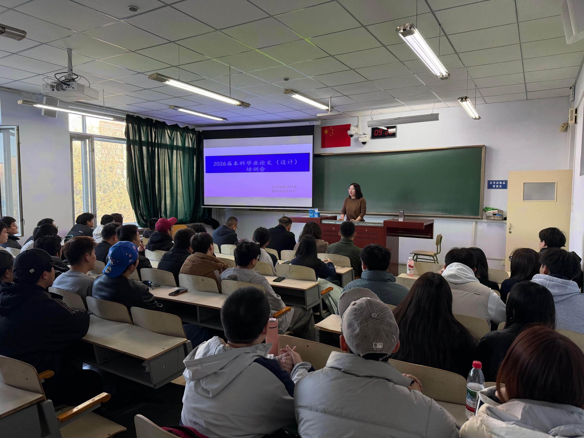 九点半,会议面向全体2026届本科生的培训会采用“线下+线上”同步模式举行。会议系统解读毕业论文(设计)的学术规范、进度安排与撰写要求,强调学术诚信准则,指导学生科学合理使用人工智能工具,详细介绍中期检查流程及《本科生毕业设计(论文)撰写规范》,助力学生明晰任务、严谨治学。